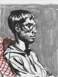 I knew I wanted abstract, organic shapes for the background of this picture to balance the planned, representational qualities of the figure. This led me to getting my Jackson Pollock on and